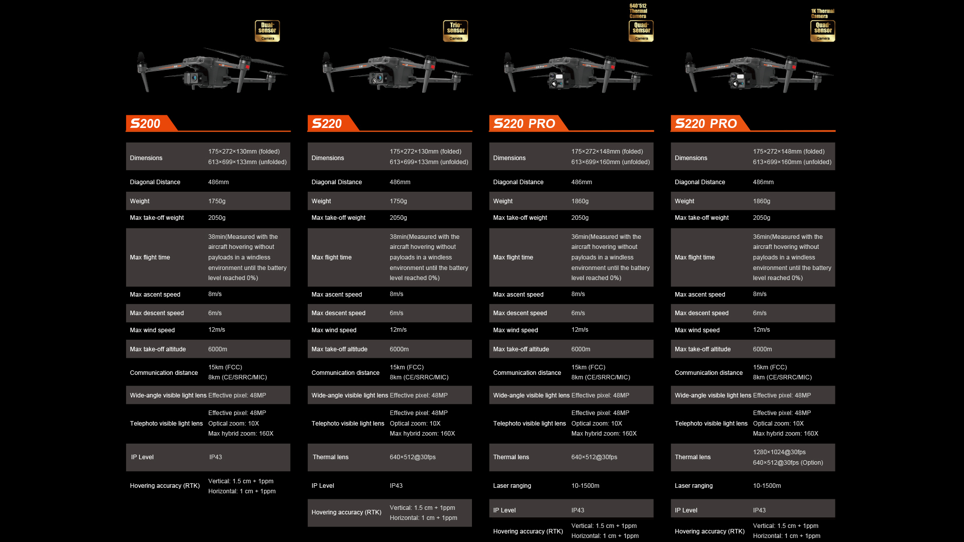 Compatible with series payloads such as dual, trio, quadra-sensor camera, megaphone, floodlight, AI box, it covers most of the work enviroment