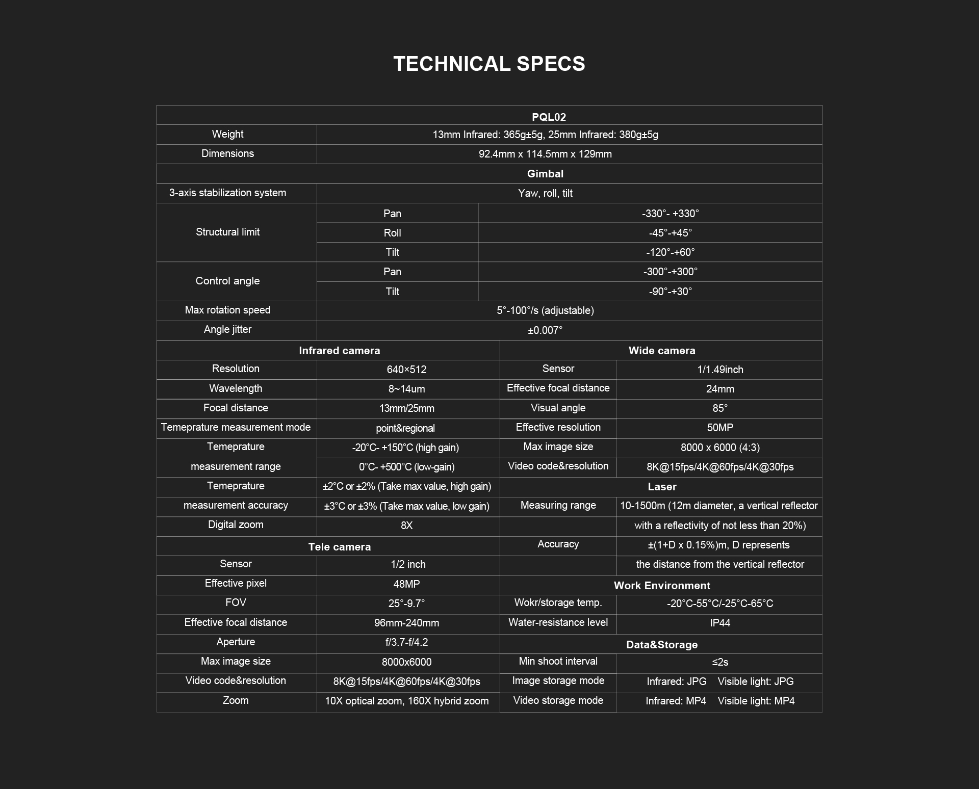 The industry-leading multi-sensor fusion solution integrates a wide-angle camera, a combined optical zoom camera, an infrared camera and a high-precision laser rangefinder, with efficient collaboration and excellent performance.