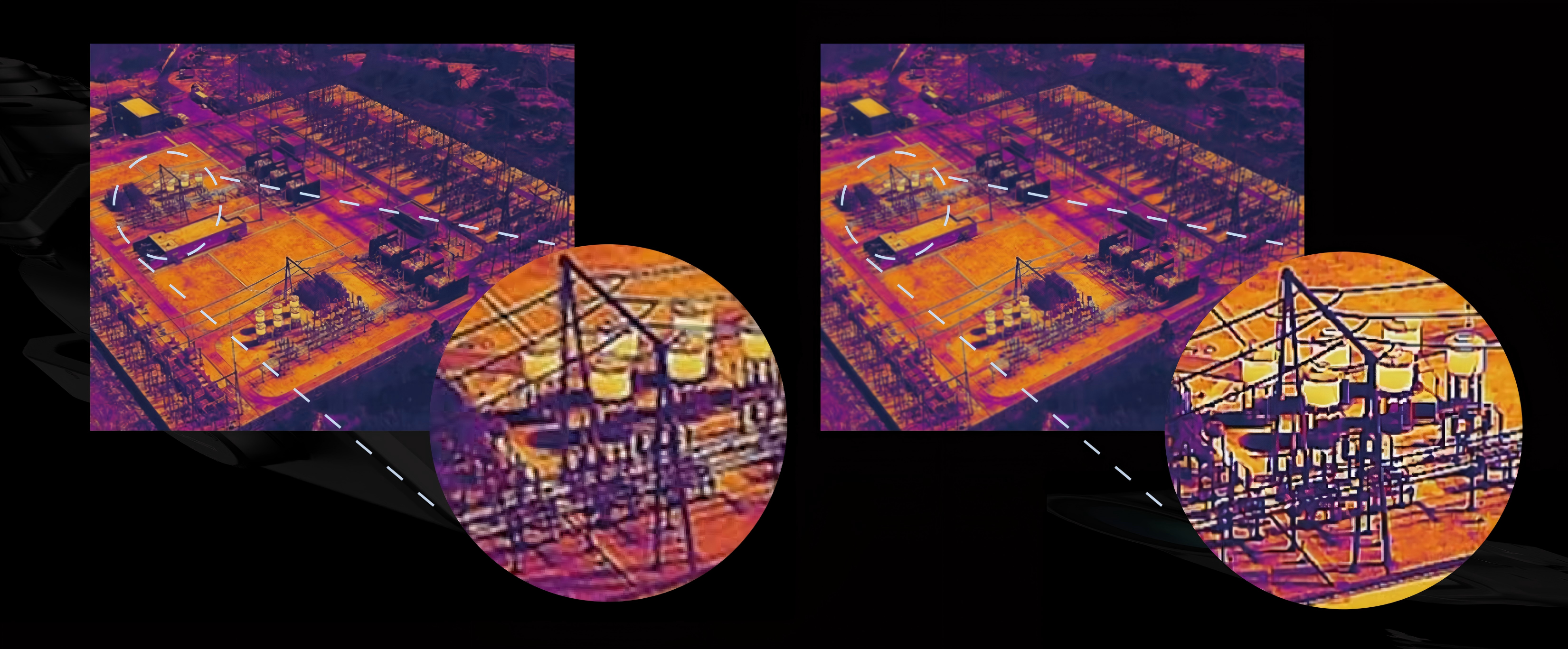 The infrared thermal camera with a 25 mm focal length delivers native 1K resolution, which is enhanced to 2K through AI-powered UHR imaging. With up to 32x AI-powered UHR enhancement, every intricate detail is sharply revealed. Each device undergoes meticulous calibration of temperature measurement accuracy before delivery. A built-in temperature sensor provides real-time measurement correction to ensure consistently accurate readings.