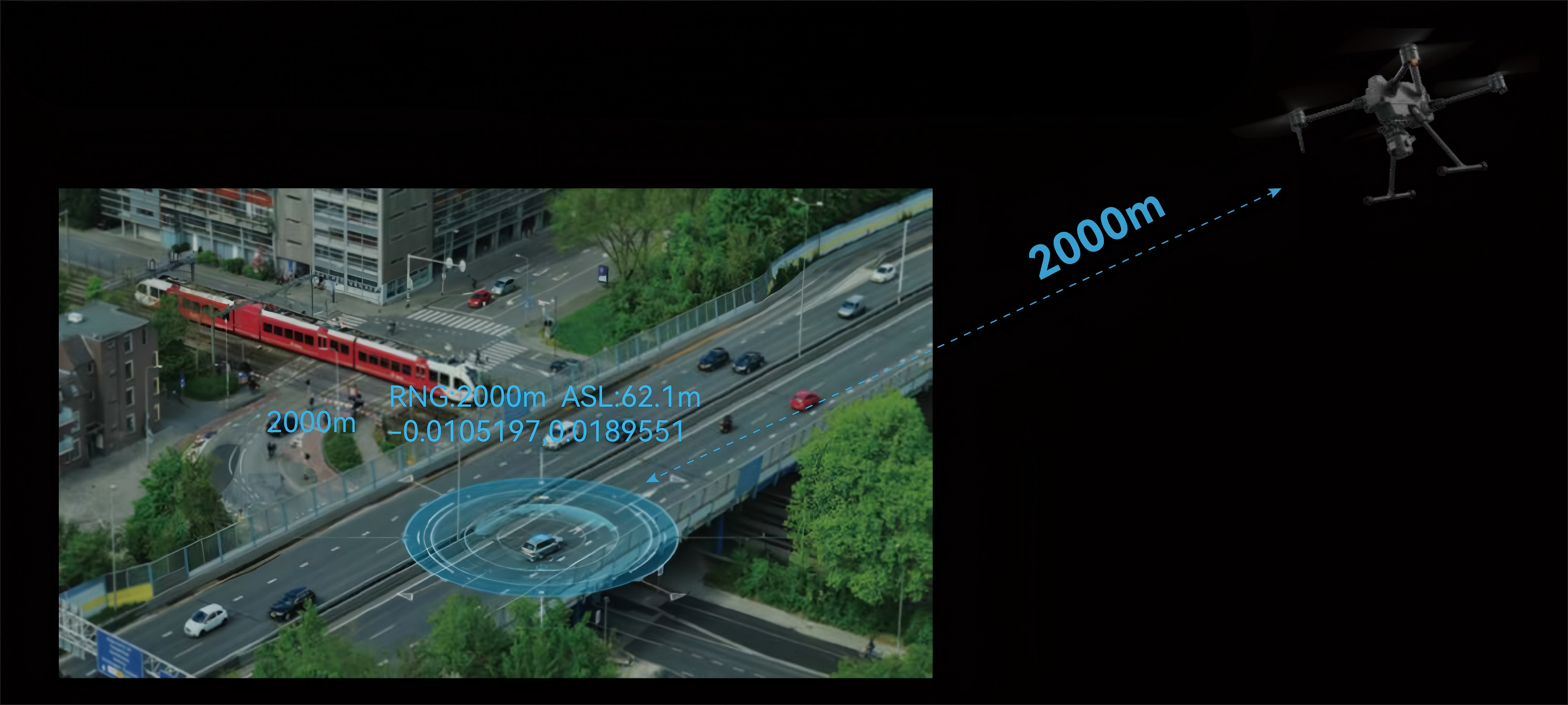 The integrated laser rangefinder offers a maximum range of 2000 m. With intelligent laser-assisted pinpointing, the target’s coordinates (latitude and longitude) and distance from the aircraft can be measured with high accuracy.
